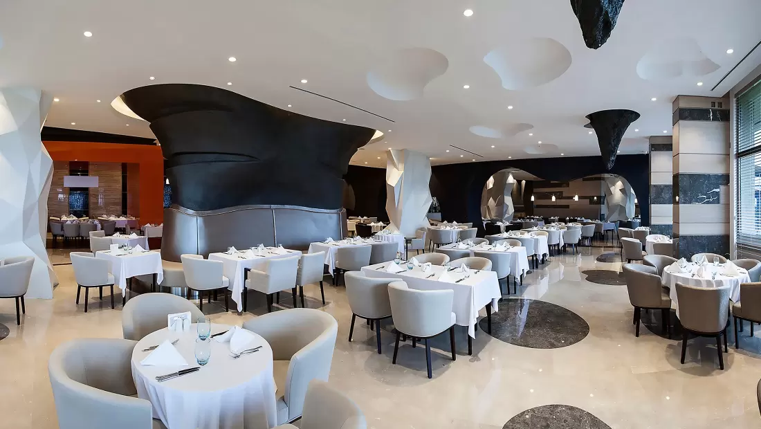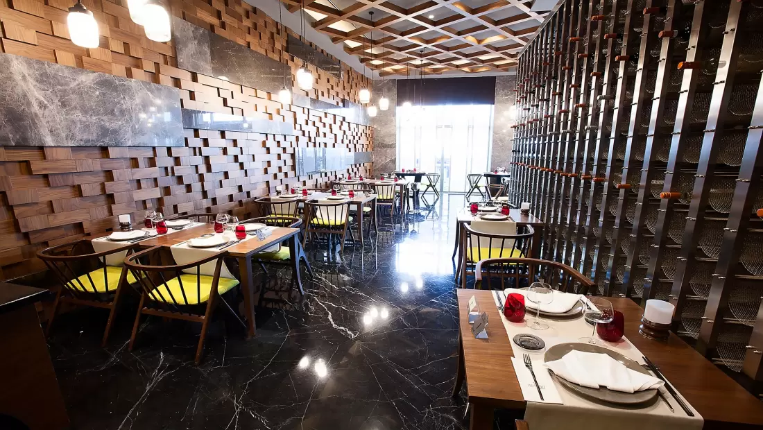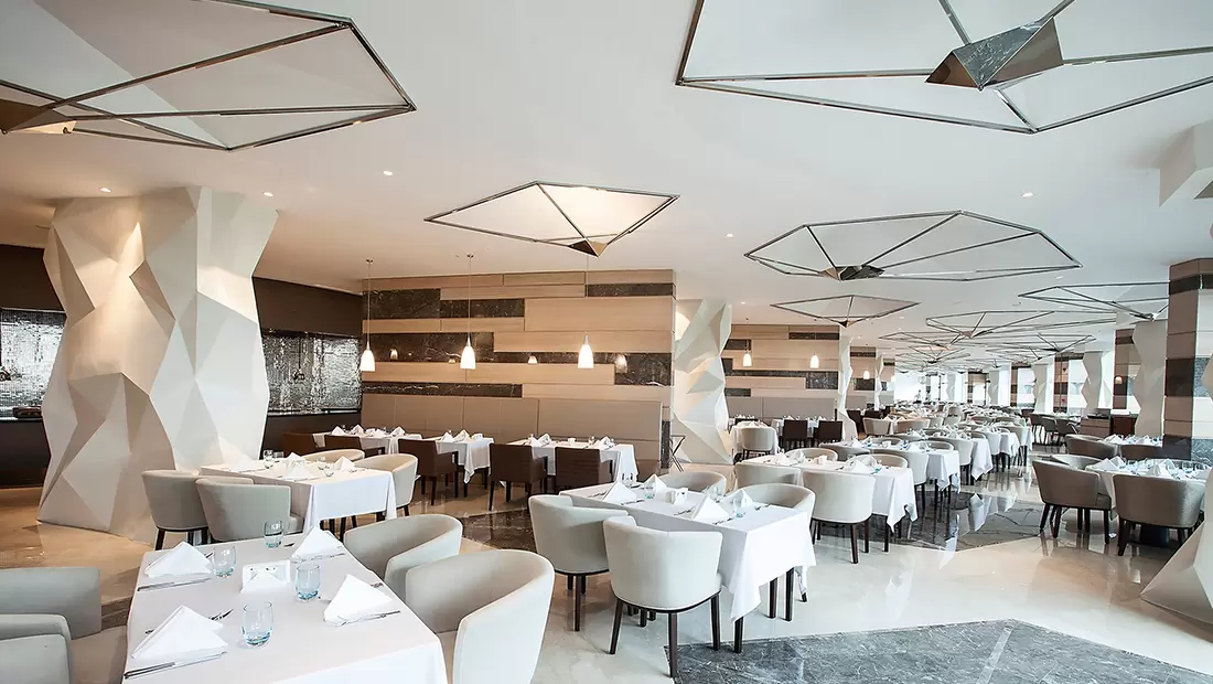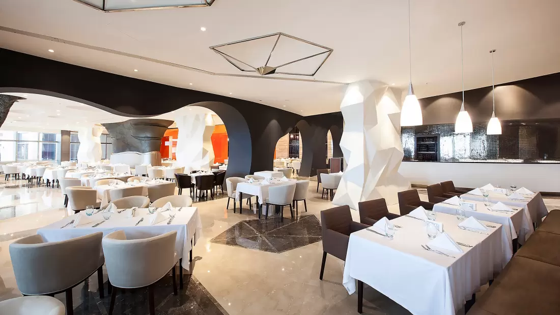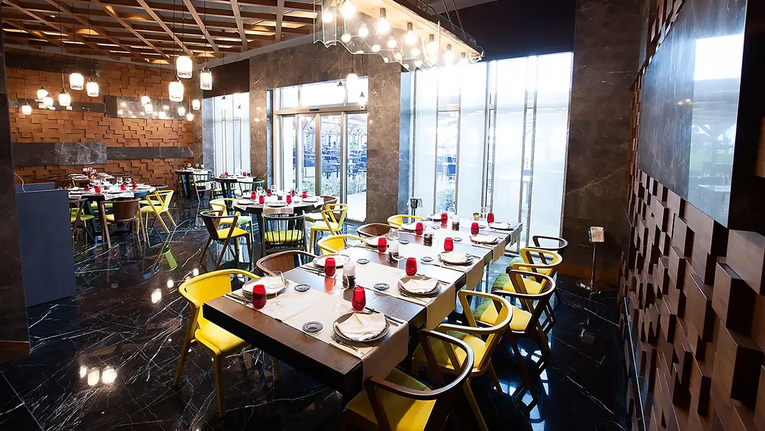 Restoranlar: Elexus Hotel Resort leziz yemekler sunan restoranlarıyla adeta gönülleri fethediyor! Çeşit çeşit yemekleri deneyimleyeceğiniz bu özel restoranları bu şekilde sıralayalım;REFLECTION - Ana RestoranDünyanın önde gelen lezzetlerinden oluşan bir yelpazeyle Türk mutfağının yerel ve otantik tatlarını bir arada sunan Reflection Restaurant, özenli dekorasyonu ve zengin büfeleri ile sabah kahvaltısı, geç kahvaltı, öğle ve akşam yemekleri için açık büfe olarak hizmet vermektedir. Reflection Restaurant’ın geniş bir terası, ayrı çocuk ve diyet büfeleri bulunmaktadır. Reflection Restaurant, yetişkinlerin ücretsiz alacakları alkollü içkileri ve diğer zengin içecek çeşitleri ile tam pansiyon anlayışına daha fazlasını getiriyor.LEAF - Ana Restoran 2Dünyanın önde gelen lezzetlerinden oluşan bir yelpazeyle Türk mutfağının yerel ve otantik tatlarını bir arada sunan Reflection Restaurant, özenli dekorasyonu ve zengin büfeleri ile sabah kahvaltısı, geç kahvaltı, öğle ve akşam yemekleri için açık büfe olarak hizmet vermektedir. Reflection Restaurant’ın geniş bir terası, ayrı çocuk ve diyet büfeleri bulunmaktadır. Reflection Restaurant, yetişkinlerin ücretsiz alacakları alkollü içkileri ve diğer zengin içecek çeşitleri ile tam pansiyon anlayışına daha fazlasını getiriyor.KALUGA - Balık RestoranBirbirinden leziz deniz ürünleri ve Ege mutfağından seçme lezzetler, Kaluga A la Carte Restaurant’ın ambiyansı ile buluşuyor.MEYAN - Ocakbaşı Türk RestoranTürk mutfağının vazgeçilmez klasikleri, mevsime göre değişen taze sebzelerle yapılan yöresel yemekler ve çok özel tariflere göre hazırlanan eşsiz ocakbaşı çeşitleri, usta şeflerimizin mükemmel sunumları ile Meyan’da bambaşka bir lezzet dünyasının kapıları aralanıyor.MYOGA - Uzak Doğu RestoranGerçek Teppanyaki ustalarının hünerlerini sergiledikleri Myoga Restaurant’ta nefis şovlar eşliğinde egzotik Uzak Doğu atmosferini ve kültürünün büyülü havasını yaşayabilir, harika lezzetlerin tadını çıkarabilirsiniz.BİSTRO 24Alışılagelenin dışına çıkan, dünya lezzetlerini takip eden, bu lezzetleri şeflerimizin tarifleri sayesinde farklı yorumlarla sunan ve minimal tasarımı ile dikkat çeken restoranımız L’atelier du Chef Bistro, 7 gün 24 saat hizmet vererek bölgede bir ilki gerçekleştiriyor.Mia Beach ClubMia Beach Club restoranımızda, uluslararası mutfağın farklı tatlarını denerken, muhteşem bir manzara size eşlik edecek. Mia, nefis menüleri ile misafirlerini bir lezzet şölenine davet ediyor.Snack BarKıbrıs turizmine Extended Full Board Plus konsepti ile yepyeni ve çok farklı bir tam pansiyon anlayışı getiren Elexus, konuklarına ana restoranda günde 3 kez özenle hazırlanan zengin açık büfelerde, nefis yemekleri tamamen ücretsiz sunarken, yine otelin ikramı olan bol seçenekli alkollü veya alkolsüz içecekler ile konuklar en güzel şekilde ağırlanıyor. Beş çaylarında ise belirlenen saat dilimleri içinde zengin pastane ürünleri ve içecekler ikram ediliyor. Elexus Hotel Mini Club’da, 4 - 12 yaş arasındaki çocuklara gün boyunca tüm yiyecek ve içecekler ücretsiz olarak sunuluyor.Ayrıca otel 5 adet À la Carte restoranı ile her damak tadı ve zevke hitap edecek geniş bir hizmet yelpazesine sahiptir.Elexus Hotel’de bu restoranların haricinde açık ve kapalı alanlarda hizmet veren toplam 8 adet bar bulunmakta olup, bu alanlarda eğlenmek isteyen konuklar için ayrı, dinlenmek isteyen misafirler için ayrı, özel tasarımlı mekanlar bulunmaktadır.Cannoli PatisserieLobby BarThe Code ClubMia Beach ClubMia Beach Club restoranımızda, uluslararası mutfağın farklı tatlarını denerken, muhteşem bir manzara size eşlik edecek. Mia, nefis menüleri ile misafirlerini bir lezzet şölenine davet ediyor.Pool BarLounge BarBowling BarVitamin BarAqua Restoran ve Bar