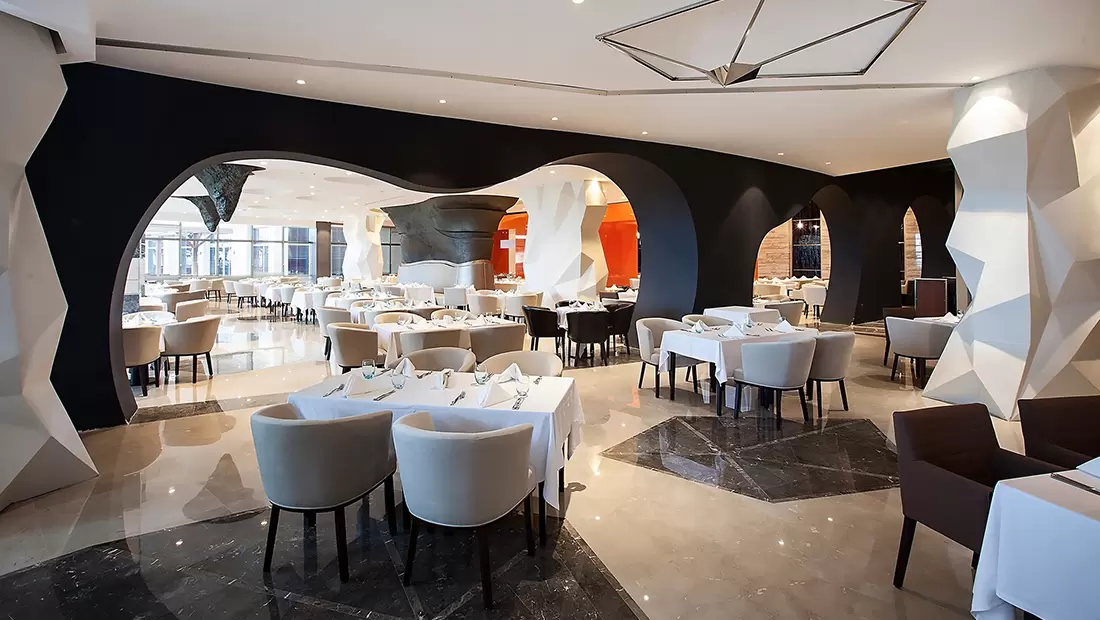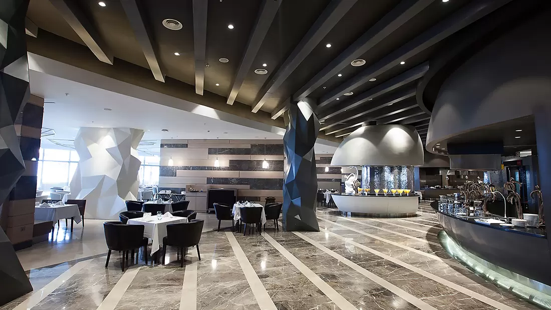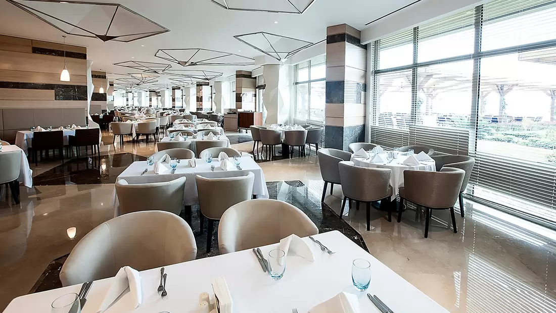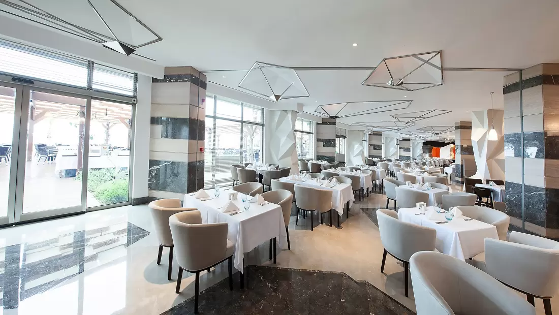 A'la Carte Bilgisi: Çok özel tatların bulunduğu A'la Carte Restoranlar rezervasyonlu ve ücretli olarak hizmet vermektedir.Meyan Ocakbaşı Restoran Pazartesi, Kaluga Balık restoranı Çarşamba ve Myoga Uzakdoğu restoranı Çarşamba günleri hizmet vermiyor. A'la Carte Restoranlar 19.00-23.30 saatleri arasında açıktır.Tüm A'la Carte Restoranlar yazın açık ve kapalı alanlarda, kışın ise kapalı alanlarda hizmet veriyor. Mia Beach Club ise kış dönemlerinde hizmet vermiyor.Kaluga A'la Carte Restoran (Deniz Mahsulleri) Bistro 24 A'la Carte Restoran (7/24 Açık) Meyan Ocakbaşı A'la Carte Restoran (Türk Mutfağı) Myoga A'la Carte Restoran (Uzakdoğu Mutfağı) Mia Beach Club (Uluslararası Mutfak)