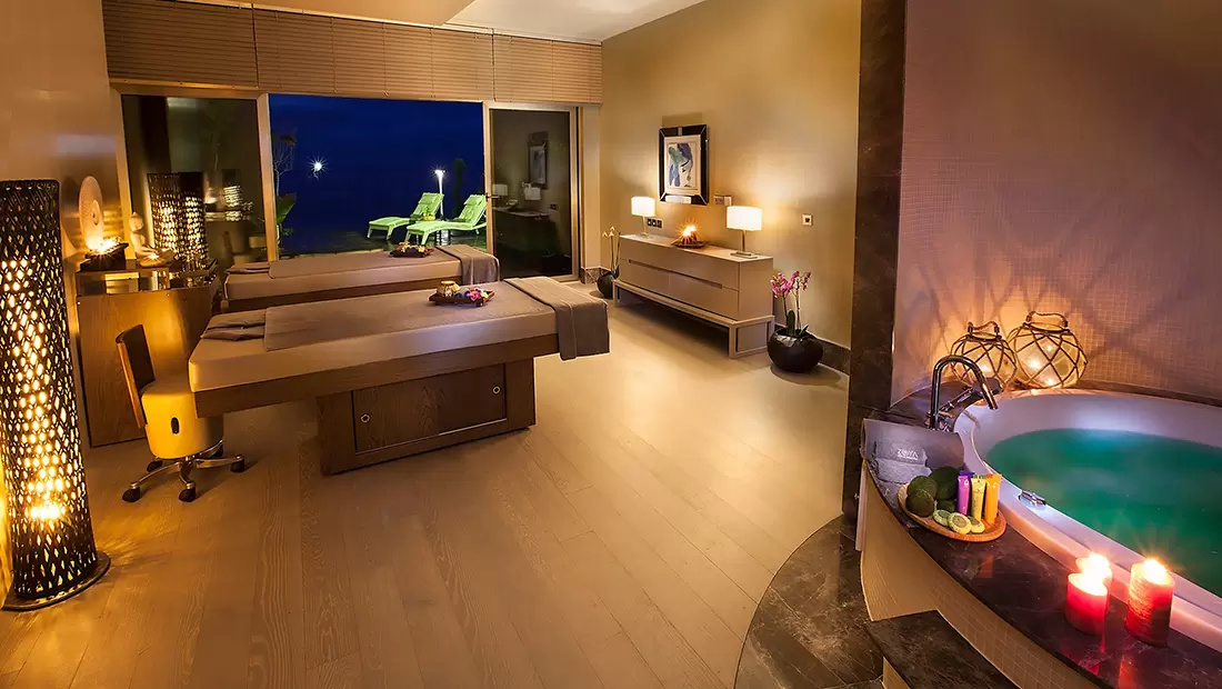 Spa Bilgisi: Elexus Hotel 4.500 m2 alana sahip SPA merkezinde, konuklarının kendilerini daha da değerli hissetmeleri için özel olanaklar sunmaktadır. SPA alanında uzman terapistler sayesinde cilt bakımlar, masaj seçenekleri, kişiye özel mini detoks kürleri ve yine misafirleri bilinçlendirici özel eğitimler sunmaktadır. Otelin bu özel SPA alanı aynı zamanda harika bir deniz manzarasına sahip olup, özel hamamı ve terasında yer alan jakuzisi ile toplamda 12 adet masaj odası, 4 terapi odası, 2 sauna, 2 hamam, buhar odası ve fitness salonundan oluşmaktadır. SPA alanı, 07-00 - 22:00 arasında hizmet vermektedir.