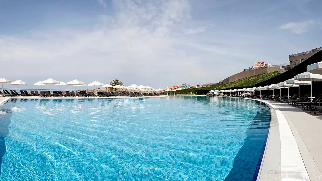 Havuz Plaj Bilgisi: Elexus Hotel Resort & Spa'da toplamda 7 havuz yer almakta olup bunlardan 3 tanesi açık ana havuz, 2 tanesi çocuk havuzu, 1 tanesi kapalı ısıtmalı havuz (yarı olimpik) ve diğer 1 tanesi ise yarı açık yarı kapalı olmak üzere şok havuzları bulunmaktadır. Ayrıca, Otelin içerisinde bulunan havuzlarında 24 adet su kaydırağı da yer almaktadır ve bu aquapark, sadece çocuklar için değil aynı zamanda yetişkinlerinde eğlenip, muhteşem bir tatil geçirmesi için dizayn edilmiştir. Aquapark'ın hizmet saatleri 10:00 - 12:00 / 14:00 - 17:00 arasındadır. Bu saatler dışında hizmet vermemektedir.Otelin havuzları dışında, deniz sevenler için de; 1.3 kilometrelik sahil şeridinde yer alan kendine özel 650 m uzunluğunda ince kumlu özel plajı bulunmaktadır. Ayrıca, plajda ve havuzda kullanılabilecek olan şezlong, şemsiye, havlu ve minder kullanımları da misafirlerimiz için ücretsizdir.