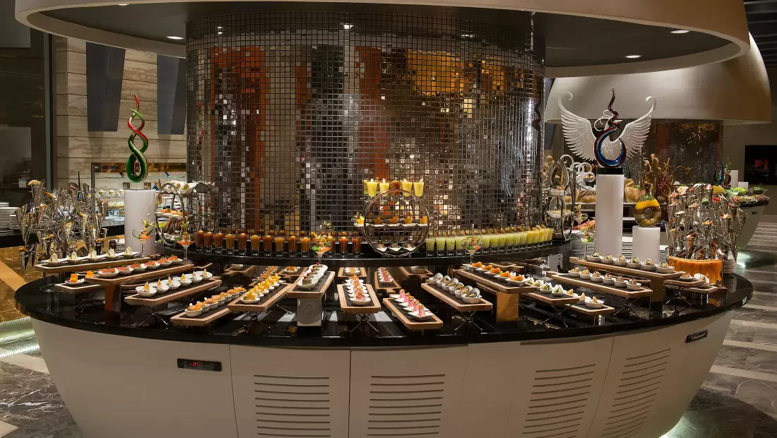 Konsept Bilgisi: Tesis tam pansiyon konseptinde hizmet vermekte olup sabah, öğle ve akşam açık büfe yemekler ücretsiz sunulmaktadır. Ana restoranda öğle ve akşam yemeklerinde sunulan tüm yerli içecekler ve otelin belirlemiş olduğu 12 yıllık yabancı alkollü içecekler ücretsizdir.Odalarda bulunan çay-kahve seti ile 2 şişe su ücretsiz olmakla birlikte her gün yenilenir ve tesis genelinde çay ve su ücretsiz ikram edilir.Tesiste zengin açık büfe yemeklerin yanı sıra ana restoran içerisinde 8 adet şov mutfağı, dünya mutfağı günleri, sağlıklı yaşam büfeleri ile birbirinden lezzetli beş çayı ikramları bulunuyor. Mia Beach, barlar, snack restoranlar, kahve köşesi, nargile cafe ve pastane ücretli hizmet veriyor.Otelde verilen Ultra Genişletilmiş Tam Pansiyon Plus konaklamalar, akşam yemeği ile başlar, konaklanan gün sayısı kadar akşam yemeği içerir ve çıkış günü sabah kahvaltı ile son bulur. Yemek saatleri aşağıdaki şekildedir;07.00-10.00 Kahvaltı10.00-11.00 Geç Kahvaltı10.00-18.00 Snack Restaurant & Bar (ücretli)10.00-19.00 Pastane (ücretli)10.00-19.00 Vitamin Bar (ücretli)10.00-19.00 Nargile Cafe (ücretli)10.00-24.00 Havuz Bar (ücretli)10.00-02.00 Mia Beach Club (ücretli)12.30-14.30 Öğle Yemeği17.00-17.45 Beş Çayı Büfesi 19.00-21.30 Akşam Yemeği24.00-01.00 Geç Snack (ücretli)24 Saat Lobi Bar (ücretli)